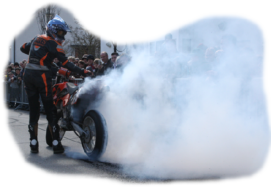 Unter diesem Motto ließ ich mehrere Jahre, immer mal wieder die Reifen qualmen. 2009 habe ich beschlossen keine Show's mehr zu fahren. Ich denke es gibt jüngere und verücktere, die nur darauf warten. Aber ich erinnere mich immer wieder gerne daran zurück....